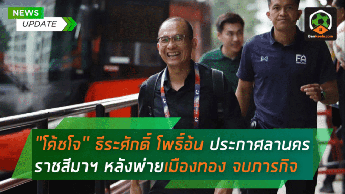 ปิดฉากตำนานอีกบทในถิ่น “สวาดแคท”! “โค้ชโจ” ธีระศักดิ์ โพธิ์อ้น ตัดสินใจอำลาตำแหน่งกุนซือของ นครราชสีมา มาสด้า เอฟซี อย่างเป็นทางการ หลังจบเกมบุกพ่าย เมืองทอง ยูไนเต็ด 0-2 ในศึก ไทยลีก 1 นัดสุดท้ายของฤดูกาล 2024/25 เมื่อค่ำคืนวันเสาร์ที่ 27 เมษายนที่ผ่านมา