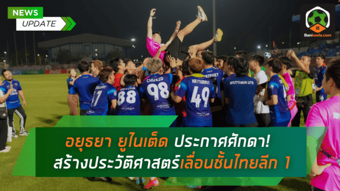 อีกหนึ่งหน้าประวัติศาสตร์วงการฟุตบอลไทยถูกจารึกขึ้น เมื่อ อยุธยา ยูไนเต็ด ภายใต้ฉายา “นักรบอโยธยา” การันตีการเลื่อนชั้นสู่เวที ไทยลีก 1 ได้สำเร็จ หลังสร้างผลงานสุดยอดในฤดูกาล 2024/25 คว้าตำแหน่งรองแชมป์ไทยลีก 2 อย่างสง่างาม พร้อมกับประกาศขอบคุณสองสโมสรพันธมิตรอย่าง เมืองทอง ยูไนเต็ด และ ทรู แบงค็อก ยูไนเต็ด ที่ส่งผู้เล่นยืมตัวเข้ามาเสริมทัพ จนกลายเป็นฟันเฟืองสำคัญพาทีมก้าวขึ้นสู่ลีกสูงสุดของประเทศ