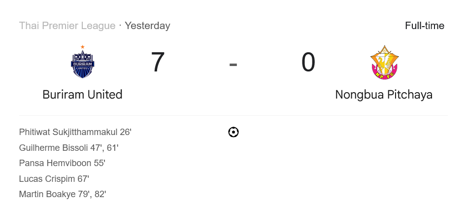 จาก : ผลบอลสด ไทยลีก 2025 ระหว่าง บุรีรัมย์ ยูไนเต็ด 7-0 หนองบัวพิชญ เอฟซี วันนี้ 30/4/68 – บ้านกีฬา