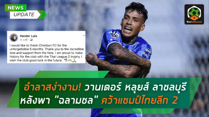 อีกหนึ่งบทสรุปสำคัญของฤดูกาล 2024/25 ที่แฟนบอล “ฉลามชล” ต้องจดจำ เมื่อ วานเดอร์ หลุยส์ แนวรุกฝีเท้าจัดจ้านชาวบราซิล ตัดสินใจโบกมือลา ชลบุรี เอฟซี อย่างเป็นทางการ หลังปิดฉากภารกิจพาทีมคว้าแชมป์ ไทยลีก 2 และตีตั๋วกลับสู่ ไทยลีก 1 ได้สำเร็จในฤดูกาลเดียวที่ร่วมทีม พร้อมทิ้งคำขอบคุณซึ้งๆ ผ่านโซเชียลมีเดียที่สะเทือนอารมณ์แฟนบอลไปทั่ว