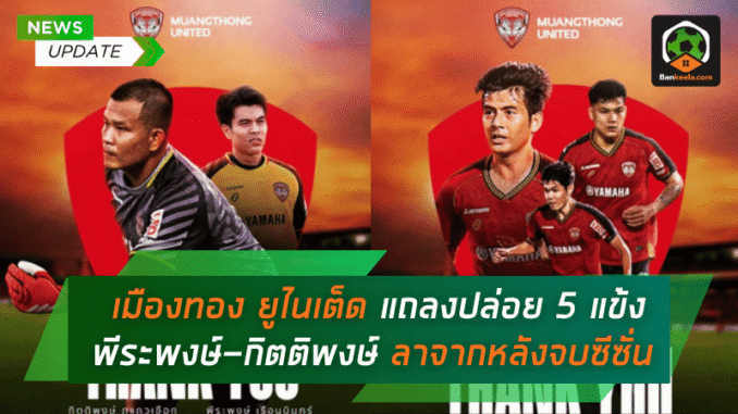 เมืองทอง ยูไนเต็ด สโมสรยักษ์ใหญ่แห่งศึกไทยลีก ไม่ปล่อยให้ความเคลื่อนไหวหลังฤดูกาลเงียบเหงา เมื่อออกแถลงการณ์อย่างเป็นทางการขอบคุณและอำลานักเตะถึง 5 ราย ที่สิ้นสุดการร่วมงานกับทีมหลังจบฤดูกาล 2024/25 โดยประกอบไปด้วยชื่อที่แฟนบอลคุ้นเคยกันดี ไม่ว่าจะเป็น พีระพงษ์ เรือนนินทร์, กิตติพงษ์ ภูแถวเชือก, สถาพร แดงสี, ชยพล ทรัพย์มา และ ธีรภัทร เลาหบุตร ซึ่งแต่ละรายล้วนฝากผลงานและความทรงจำเอาไว้บนถิ่นธันเดอร์โดมอย่างไม่อาจลืม