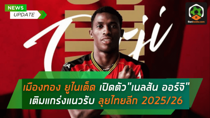 เดินหน้าเสริมความแข็งแกร่งอย่างไม่หยุดยั้งสำหรับ เมืองทอง ยูไนเต็ด ทีมยักษ์ใหญ่แห่งเวทีไทยลีก ที่ล่าสุดประกาศเปิดตัวแข้งต่างชาติรายใหม่อย่างเป็นทางการ นั่นคือ เนลสัน ออร์จิ ปราการหลังดาวรุ่งชาวไนจีเรียวัยเพียง 23 ปี ที่มาพร้อมประสบการณ์ค้าแข้งในยุโรปและสหรัฐอเมริกา รวมถึงสถิติอันน่าทึ่งจากลีกสโลเวเนีย เพื่อยกระดับเกมรับของทัพ กิเลนผยอง ให้แน่นหนายิ่งกว่าเดิมในศึก ไทยลีก 2025/26 ภายใต้การคุมทัพของกุนซือคนเก่ง รังสรรค์ วิวัฒน์ชัยโชค