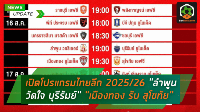 สำหรับโปรแกรมนัดเปิดสนามของ ไทยลีก 2025/26 มีดังนี้