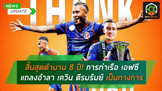 ถึงคราวต้องกล่าวคำลาสำหรับหนึ่งในผู้เล่นที่แฟนบอล “สิงห์เจ้าท่า” ผูกพันมากที่สุด เมื่อ การท่าเรือ เอฟซี ออกแถลงการณ์อย่างเป็นทางการว่าได้ แยกทางกับ เควิน ดีรมรัมย์ แบ็กซ้ายลูกครึ่งไทย-สวีเดนวัย 27 ปี หลังร่วมเดินทางกับสโมสรมาอย่างยาวนานตั้งแต่ปี 2018 โดยตลอด 8 ปีเต็มในสีเสื้อส้ม-น้ำเงิน เขาคือหนึ่งในหัวใจสำคัญของทีมทั้งในและนอกสนาม