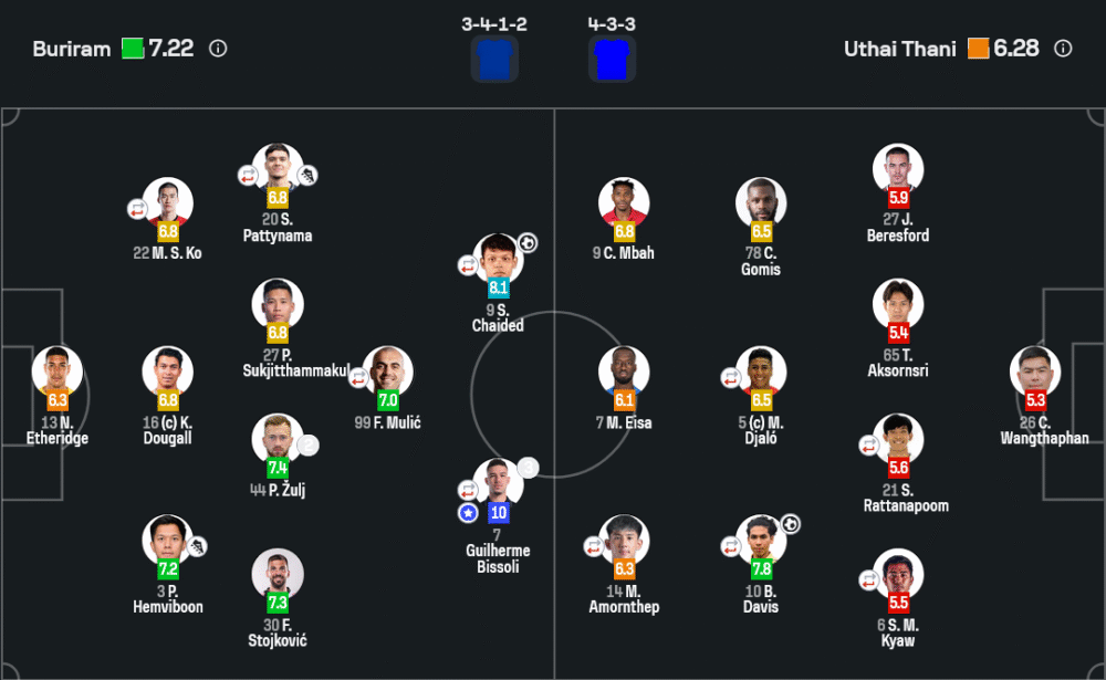 รูปเกมสะท้อนงาน วิเคราะห์บอล แบบชัดเจน—บุรีรัมย์จัด 3-4-1-2 เปลี่ยนสปีดรุกด้วยวิงแบ็กสองฝั่ง ด้านซ้ายโฟกัสโอเวอร์แล็ปและครอสสั้น ๆ เข้าพื้นที่ฮาล์ฟสเปซให้ บิสโซลี–สุปาชัย ทะลุช่อง ขณะที่แดนกลางใช้ซุลล์ยคุมจังหวะและแทงทะลุแนวสอง เมื่อเสียบอล แผงหลังสามคนดันไลน์สูงตัดเกมเร็ว ทำให้อุทัยธานีไม่ค่อยได้ยิงแบบจัง ๆ ส่วนผู้มาเยือนวาง 4-3-3 ตั้งบล็อกกลางสนาม อาศัยความเร็วของปีกและลูกเซ็ตพีซ แต่ระยะห่างไลน์กองกลาง-กองหลังหลวม พอโดนบุรีรัมย์เร่งเพรสซิ่ง การวางบอลหลังแบ็กจึงถูกเจาะซ้ำ ๆ หลังจากตีเสมอ 1-1 ทีมเยือนดันสูงหวังพลิก แต่ช่องว่างด้านหลังใหญ่ขึ้นจนโดนสวนทีละดอก ความต่างคือความคมและการจบสกอร์ในกรอบเขตโทษ