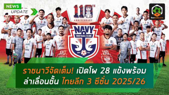 ราชนาวีจัดเต็ม! เปิดโผ 28 แข้งพร้อมล่าเลื่อนชั้น ไทยลีก 3 ซีซั่น 2025/26