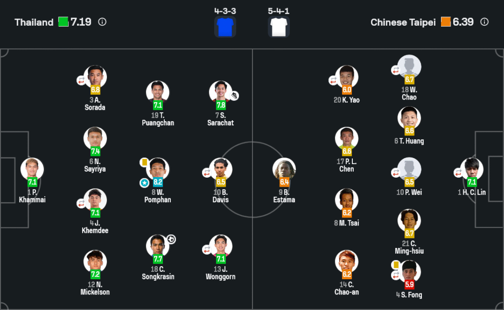 ในแง่ วิเคราะห์บอล ทีมชาติไทยเล่นในระบบ 4-3-3 ที่ยืดหยุ่นมาก เน้นครองบอลกลางสนามและขึ้นเกมจากสองข้างผ่าน ชนาธิป และศุภโชค ที่เชื่อมบอลได้อย่างลงตัว วีระเทพคุมเกมได้ยอดเยี่ยม สร้างจังหวะบุกทะลวงแนวรับคู่แข่งได้ต่อเนื่อง ส่วนแนวรับไทยดูมั่นคง แม้จีน-ไต้หวันจะพยายามสวนกลับแต่ก็แทบไม่หลุดเข้ากรอบ การเพรสซิ่งเร็วของแดนกลางทำให้ฝั่งตรงข้ามแทบไม่มีจังหวะจบสกอร์ ขณะที่เกมรับจีน-ไต้หวันต้องทำงานหนักจากการรับแรงกดดันตลอดทั้งเกม โดยเฉพาะผู้รักษาประตู หวัง ฉิว หลิน ที่ต้องเซฟถึงสองครั้งเพื่อป้องกันสกอร์เพิ่ม