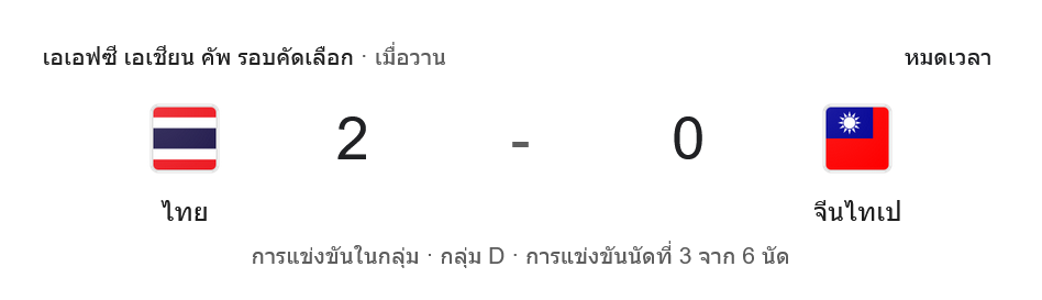 ศึก เอเชียน คัพ 2027 รอบคัดเลือก กลุ่ม D ทีมชาติไทยโชว์ฟอร์มสมราคา เปิดเกมรุกบดเอาชนะ จีน-ไต้หวัน 2-0 ที่สนามกลางในเมียววาน แบบเหนือกว่าทุกกระบวนท่า โดยเกมนี้ “ช้างศึก” ครองบอลกว่า 70% และสร้างโอกาสยิงถึง 17 ครั้ง แสดงให้เห็นถึงศักยภาพเกมรุกที่จัดจ้านและระบบทีมที่ลงตัวภายใต้การคุมทีมของ มาซาทาดะ อิชิอิ นับเป็นสามแต้มสำคัญที่พาทีมขยับขึ้นมามี 6 คะแนนเท่ากับจ่าฝูง เติร์กเมนิสถาน และศรีลังกาในกลุ่ม D ซึ่งสถานการณ์ตอนนี้กลับมาลุ้นเข้ารอบอีกครั้งเต็มตัวตามเสียงเชียร์จากแฟนบอล บ้านกีฬา ที่เกาะติด ผลบอลสด ตลอดทั้งเกม