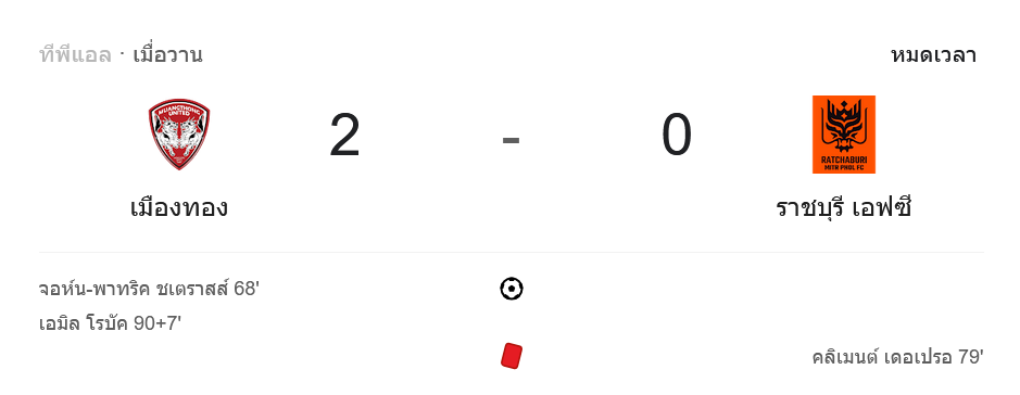 ผลบอลไทยลีก 2024 ระหว่าง ทีมเมืองทอง ยูไนเต็ด vs ทีมราชบุรี เอฟซี วันนี้ 29/8/67 ดูบอลย้อนหลัง คลิปไฮไลท์ ดูบอลไทยลีก 2024