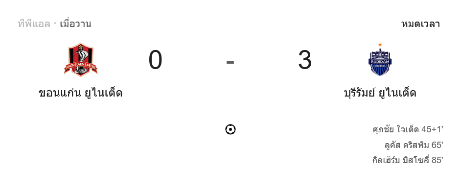 ผลบอลวันนี้ ยืนยันถึงความแข็งแกร่งของบุรีรัมย์ ยูไนเต็ด ที่เป็นทีมที่ยากจะต่อกรในไทยลีกฤดูกาลนี้ ขณะที่ขอนแก่น ยูไนเต็ด ต้องปรับปรุงฟอร์มการเล่นเพื่อหวังผลในนัดถัดไป