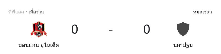 ศึกฟุตบอล ไทยลีก 2024 ระหว่างทีม ขอนแก่น ยูไนเต็ด กับ นครปฐม เอฟซี จบลงด้วยผลเสมอแบบไร้สกอร์ 0-0 แม้ว่าทั้งสองทีมจะพยายามบุกทำประตูตลอด 90 นาที แต่ยังไม่สามารถส่งบอลผ่านตาข่ายได้ ทำให้แบ่งแต้มกันไปคนละหนึ่งแต้ม ท่ามกลางเสียงเชียร์ของแฟนบอลที่เข้ามาชมการแข่งขันในสนาม