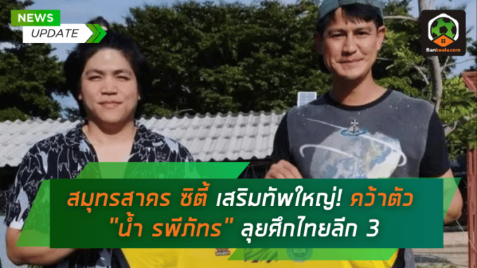 “พยัคฆ์สาคร” สมุทรสาคร ซิตี้ ทีมดังจาก ไทยลีก 3 โซนตะวันตก สร้างกระแสฮือฮาในวงการฟุตบอลไทยอีกครั้ง หลังประกาศคว้าตัว “น้ำ” รพีภัทร เอกพันธ์กุล นักแสดงชื่อดังและมีประสบการณ์ในวงการบันเทิง เข้าร่วมทีมอย่างเป็นทางการ เพื่อเสริมทัพสู้ศึกไทยลีกฤดูกาลนี้ พร้อมทั้งเพิ่มมิติใหม่ให้กับทีมในฐานะนักเตะมากความสามารถ