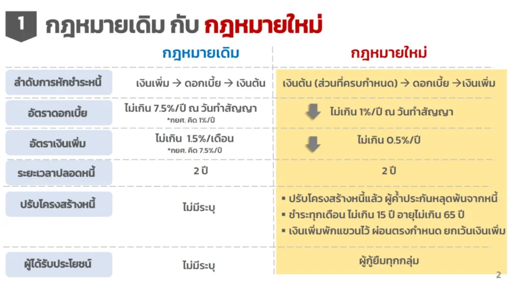 กยศ. ปรับลำดับการชำระหนี้ใหม่เป็น “เงินต้น → ดอกเบี้ย → เงินเพิ่ม” จากเดิมที่เริ่มตัดจากเบี้ยปรับก่อน ซึ่งส่งผลให้ยอดหนี้รวมลดลงอย่างมีนัยสำคัญ พร้อมลดดอกเบี้ยจาก 7.5% เหลือ ไม่เกิน 1% ต่อปี และลดเบี้ยปรับจาก 18% เหลือเพียง 0.5% ต่อปี เท่านั้น นอกจากนี้ยังระบุชัดให้ผู้ค้ำประกัน “หลุดพ้นจากพันธะ” ด้วย