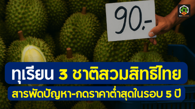 ราคาทุเรียนร่วงเหลือ 90 บาท! ต่ำสุดในรอบ 5 ปี