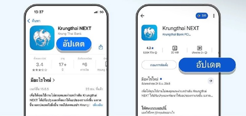 - Krungthai NEXT: ต้องเป็นเวอร์ชัน 15.6.5 ขึ้นไป