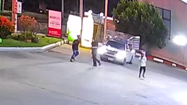 จากนั้นเป๊กลงจากฝากระโปรง ไหว้และกอดคนขับอย่างไม่มีปี่มีขลุ่ย ก่อนจะหันไปเผชิญหน้ากับชายอีกคนในปั๊ม ซึ่งต่อมา ระบุชื่อว่า นายชุติเทพ อายุ 21 ปี ก่อนเกิดการปะทะกันอย่างฉับพลัน