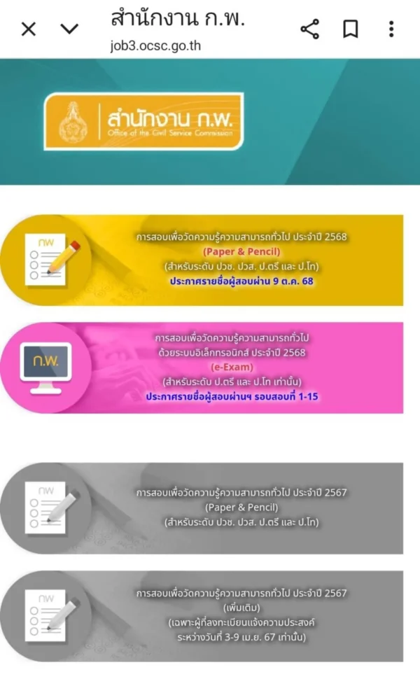 - ✅ ตรวจผลสอบ ที่ https://job3.ocsc.go.th
