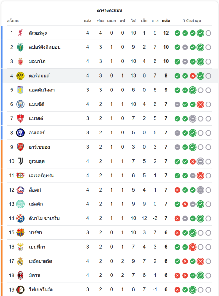 หลังจากชนะเกมนี้ ดอร์ทมุนด์ เก็บ 9 แต้ม ขยับขึ้นไปอยู่ในกลุ่มอันดับสูงของ ตารางคะแนนยูฟ่าแชมเปียนส์ลีก ขณะที่ สตวร์มกราซ ยังต้องเร่งฟอร์มเพื่อเก็บแต้มในเกมที่เหลือ เพื่อหวังเข้ารอบต่อไปในศึกแชมเปียนส์ลีกนี้