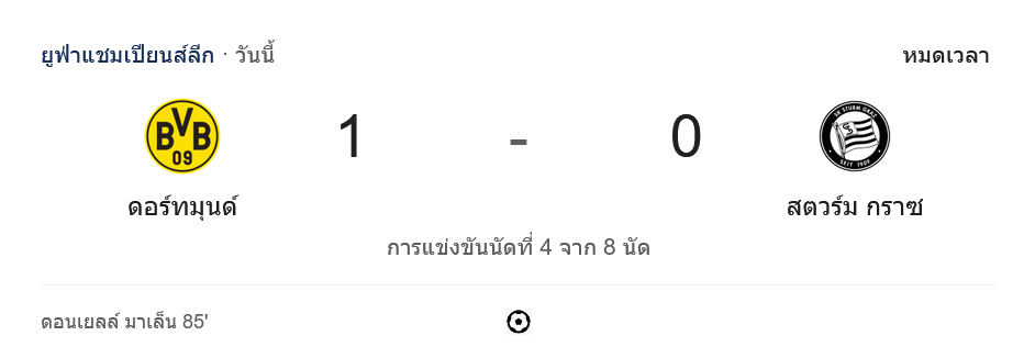 ผลบอลสดยูฟ่าแชมเปียนส์ลีก 2024 ระหว่าง ทีมโบรุสเซีย ดอร์ทมุนด์ vs ทีมสตวร์มกราซ วันนี้ 6/11/67 ดูบอลย้อนหลัง คลิปไฮไลท์ ดูบอลยูฟ่าแชมเปียนส์ลีก 2024