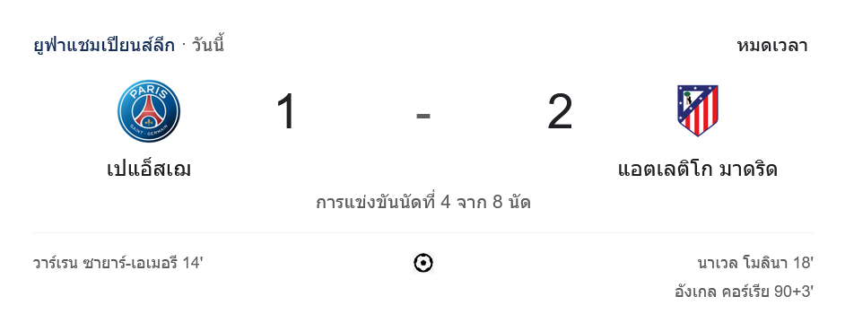 ผลบอลสดยูฟ่าแชมเปียนส์ลีก 2024 ระหว่าง ทีมปารีส แซงต์ แชร์กแมง vs ทีมแอตเลติโก้ มาดริด วันนี้ 7/11/67 ดูบอลย้อนหลัง คลิปไฮไลท์ ดูบอลยูฟ่าแชมเปียนส์ลีก 2024