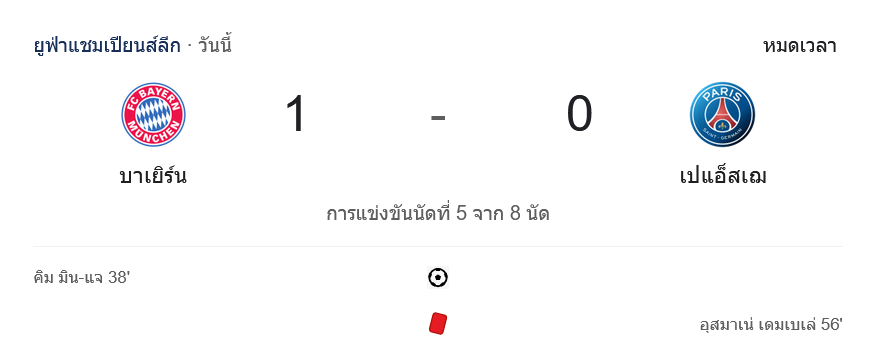 - ⚽ น.38 คิม มิน-แจ ยิงประตูให้บาเยิร์นขึ้นนำ 1-0