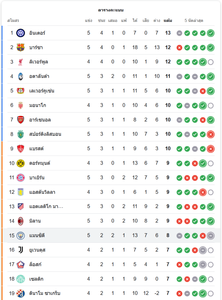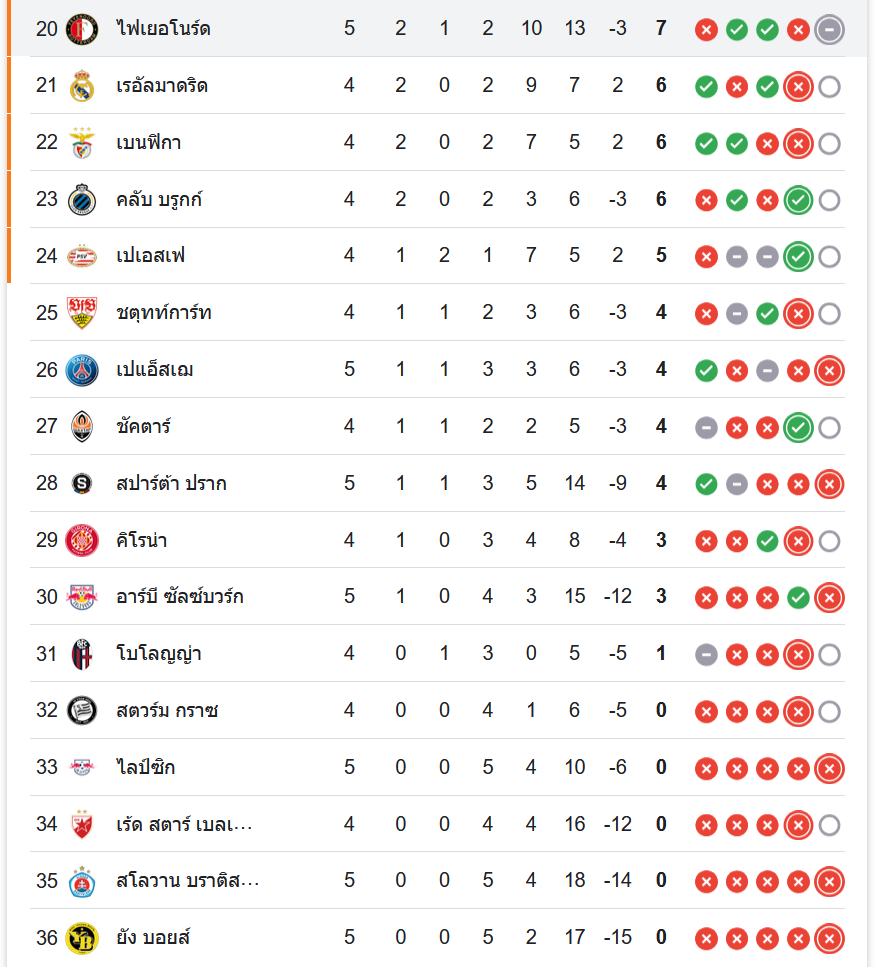 หลังเกมนี้ แมนเชสเตอร์ ซิตี้ มี 8 คะแนนจาก 5 นัด อยู่อันดับที่ 15 ของตารางคะแนน ขณะที่ เฟเยนูร์ด ร็อตเธอร์ดัม มี 7 คะแนน รั้งอันดับที่ 20 โอกาสเข้ารอบยังคงเปิดกว้างสำหรับทั้งสองทีม