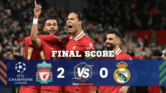 นาทีที่ 95: กรรมการเป่านกหวีดจบเกม ลิเวอร์พูลเอาชนะเรอัล มาดริด 2-0 เก็บชัยชนะในบ้านอย่างยอดเยี่ยม