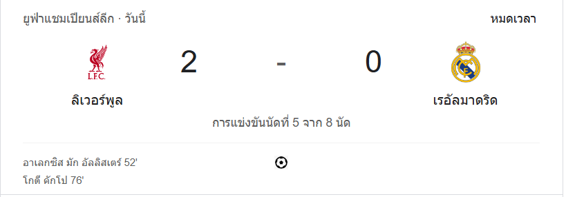 ผลบอลสด ยูฟ่าแชมเปียนส์ลีก 2024 ระหว่าง ทีม ลิเวอร์พูล vs เรอัล มาดริด วันนี้ 28/11/67 ดูบอลย้อนหลัง คลิปไฮไลท์ ดูบอลยูฟ่าแชมเปียนส์ลีก 2024