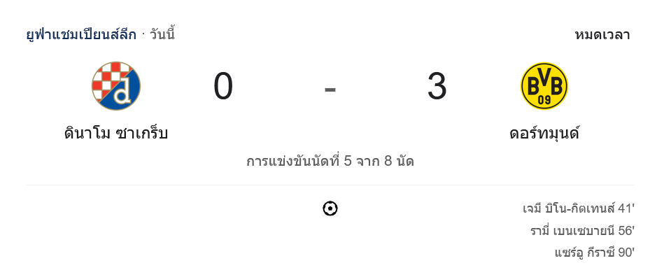 - ⚽️ นาทีที่ 41: เจมี่ กิทเทนส์ ยิงประตูให้ดอร์ทมุนด์นำ 1-0