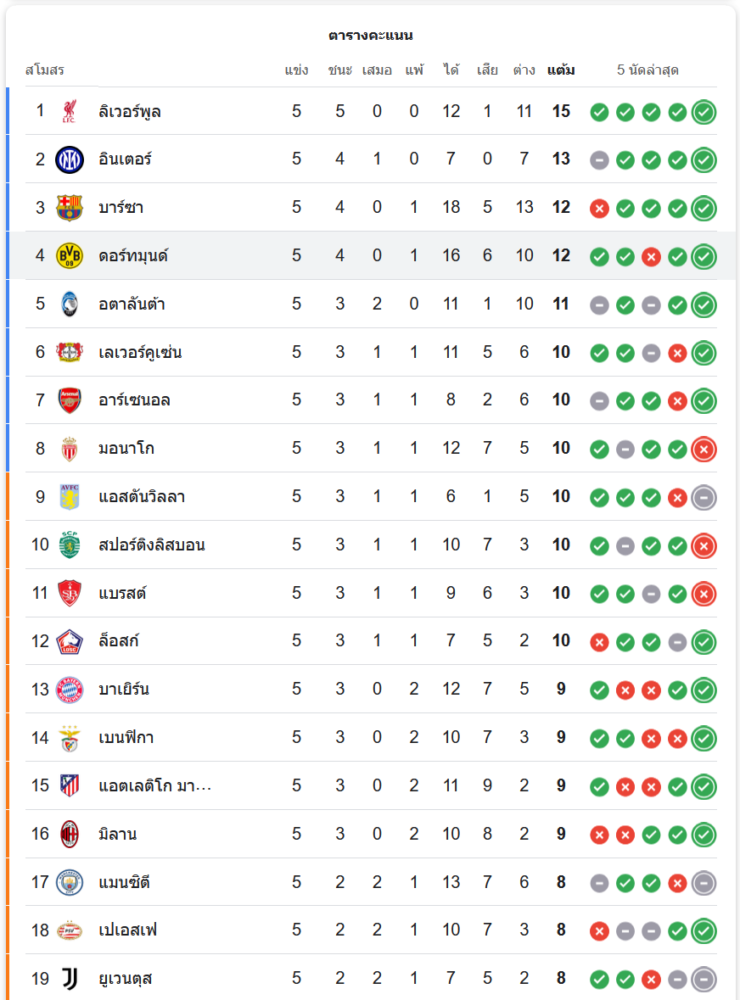 สถานการณ์ในตารางคะแนน