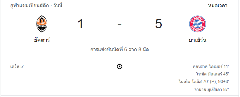จบเกม: บาเยิร์น มิวนิคเอาชนะชักตาร์ โดเน็ตส์ก 5-1