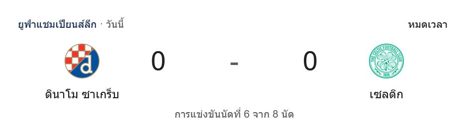จาก : ผลบอลสด ยูฟ่าแชมเปียนส์ลีก 2024 ระหว่าง ดินาโม ซาเกร็บ 0-0 เซลติก ไลป์ซิก วันนี้ 11/12/67 – บ้านกีฬา