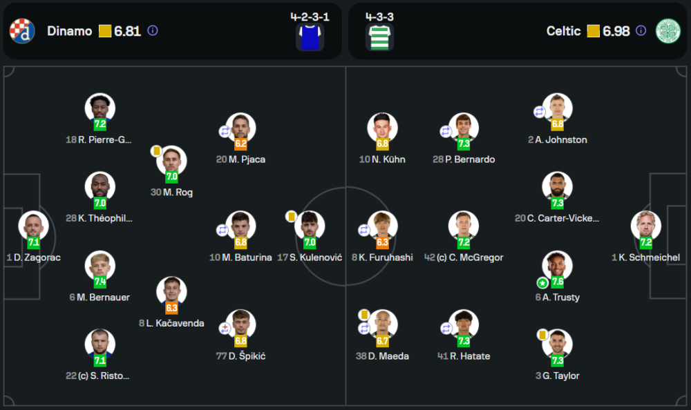 - กองกลาง: ลูก้า คาชาเวนด้า (6.8), โดมินิค คูเลนอวิช (7.0)