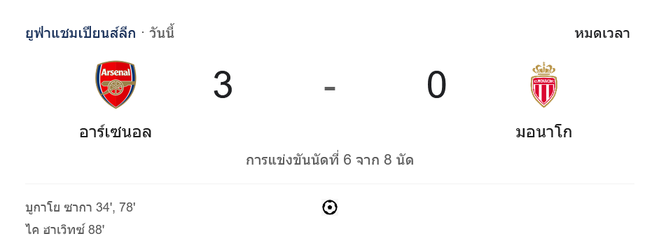 จาก : ผลบอลสด ยูฟ่าแชมเปียนส์ลีก 2024 ระหว่าง อาร์เซนอล 3-0 โมนาโก วันนี้ 12/12/67 – บ้านกีฬา