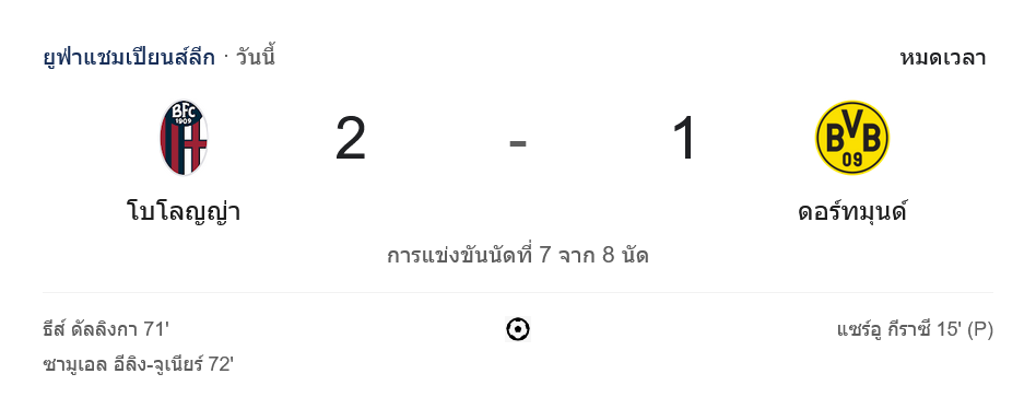 จาก : ผลบอลสด ยูฟ่าแชมเปียนส์ลีก 2024 ระหว่าง โบโลญญ่า 2-1 โบรุสเซีย ดอร์ทมุนด์ วันนี้ 22/1/68 – บ้านกีฬา