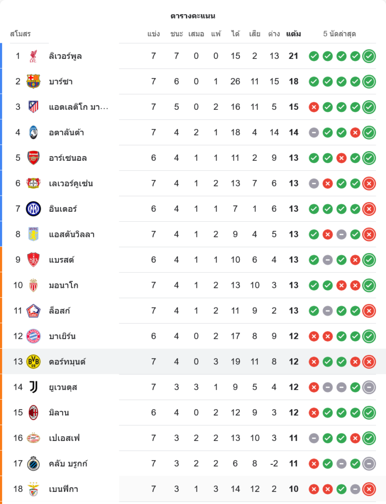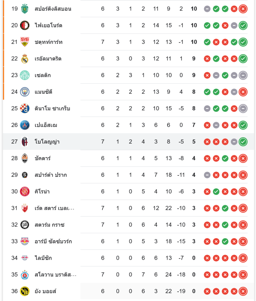 ชัยชนะของ โบโลญญ่า ทำให้พวกเขาเก็บ 5 คะแนน แต่ยังคงอยู่ที่อันดับ 27 ของตาราง ส่วน ดอร์ทมุนด์ มี 12 คะแนน อยู่อันดับ 13 และเริ่มกดดันในการลุ้นเข้ารอบต่อไป