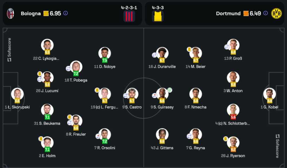 การครองบอล โบโลญญ่า 53% – ดอร์ทมุนด์ 47%