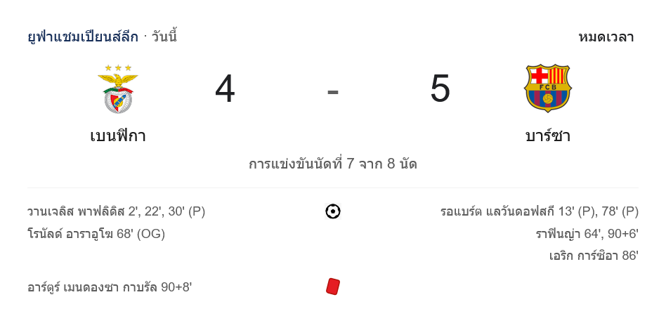 จาก : ผลบอลสด ยูฟ่าแชมเปียนส์ลีก 2024 ระหว่าง เบนฟิก้า 4-5 บาร์เซโลน่า วันนี้ 22/1/68 – บ้านกีฬา