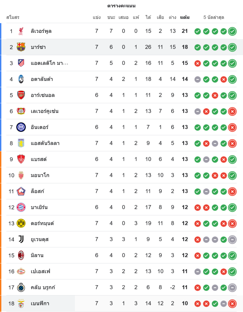 ชัยชนะของ บาร์เซโลน่า ส่งพวกเขารั้งอันดับ 2 ของกลุ่ม มี 18 คะแนน ไล่จี้ ลิเวอร์พูล ขณะที่ เบนฟิก้า หล่นไปอยู่ที่ 18 มีเพียง 10 คะแนน