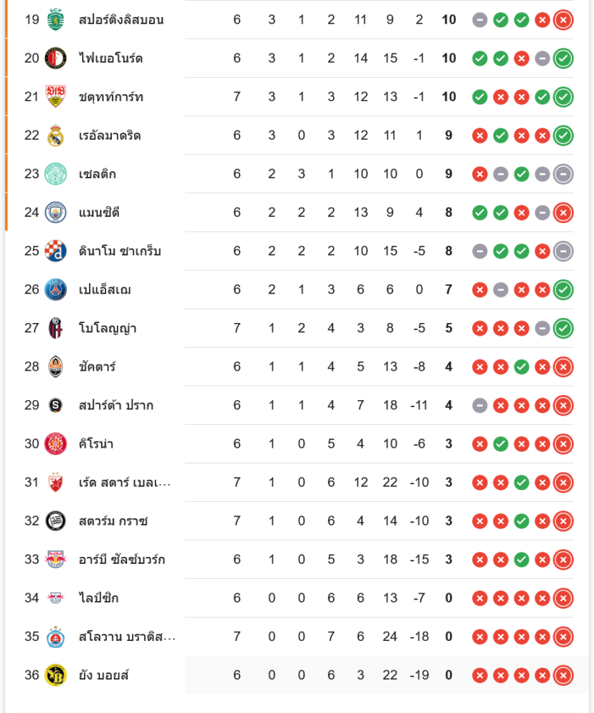 สถานการณ์ในตารางคะแนน