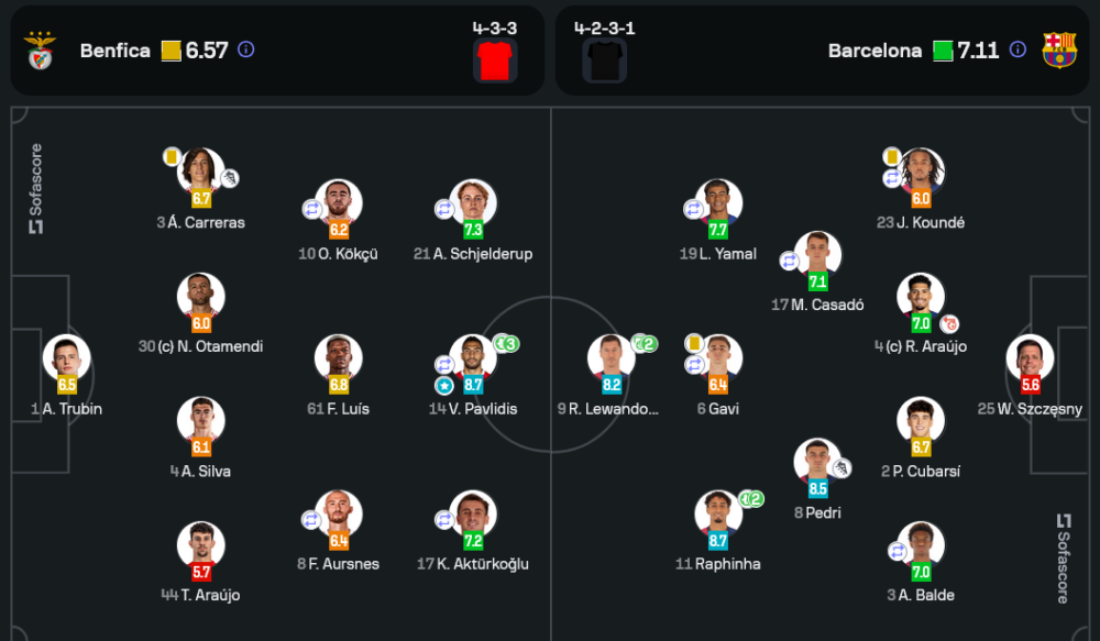 กองหน้าของเบนฟิก้าระเบิดฟอร์มสุดยอด ทำแฮตทริก และสร้างความอันตรายตลอดทั้งเกม ได้คะแนนสูงสุดที่ 8.7 แม้ทีมจะแพ้ก็ตาม