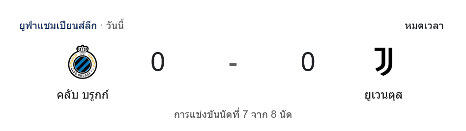 บ้านผลบอล สรุปหลังเกม ศึกยูฟ่าแชมเปียนส์ลีก 2024 คลับบรูซ เปิดรังเจ๊ายูเวนตุส 0-0 เกมเดือดไร้สกอร์