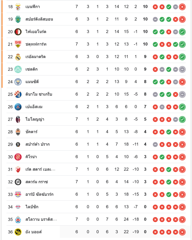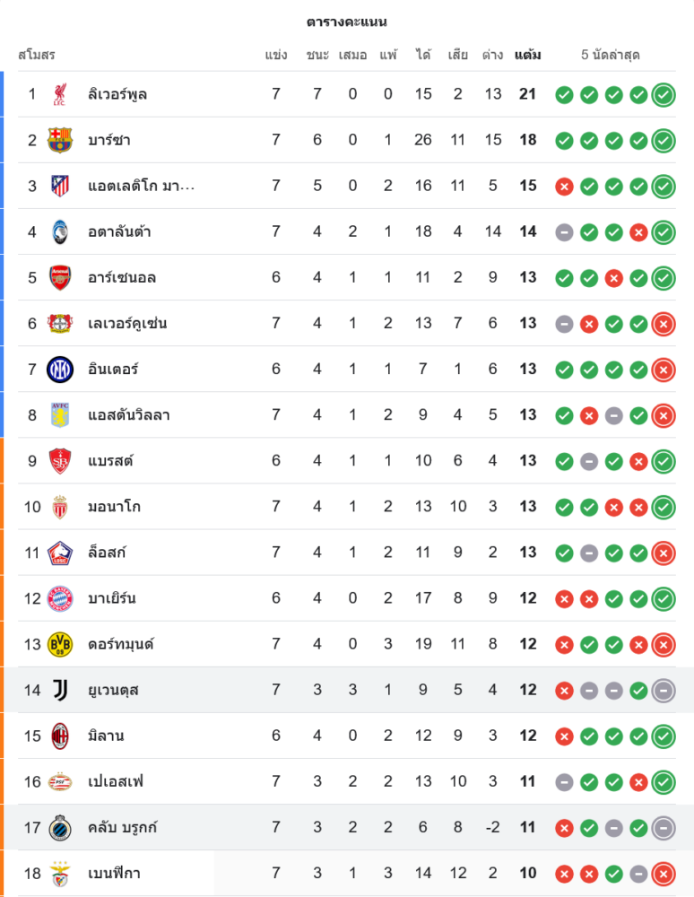 สถานการณ์ในตารางคะแนน