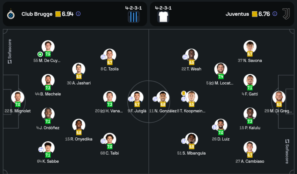 แม็กซิม เดอ คูย์เปอร์ ฟูลแบ็กของคลับบรูซได้รับการโหวตเป็น Man of the Match ด้วยคะแนน 7.5 เขามีส่วนสำคัญในการช่วยทีมป้องกันเกมรุกของยูเวนตุส และยังเป็นจุดเริ่มต้นของการสวนกลับหลายครั้ง สมควรได้รับคำชมจากผลงานที่ยอดเยี่ยม