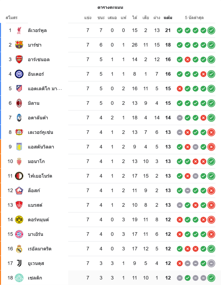 สถานการณ์ในตารางคะแนน