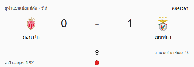 - นาทีที่ 49 กรรมการเป่านกหวีดจบครึ่งแรก โมนาโก 0-0 เบนฟิก้า