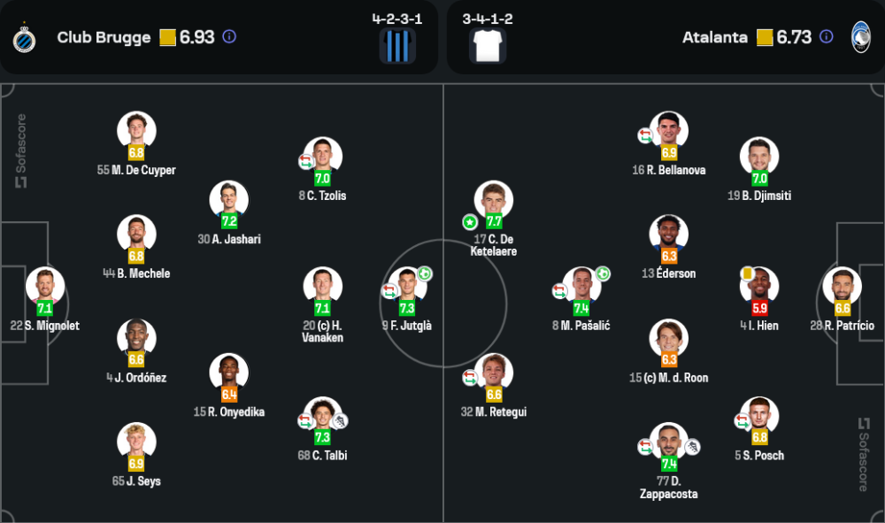 คลับบรูซเลือกใช้แผน 4-2-3-1 โดยเน้นการครองบอลและสร้างเกมรุกจากแนวลึก ขณะที่อตาลันต้ามาในระบบ 3-4-1-2 ที่หวังใช้เกมสวนกลับและความเร็วของปีกข้าง