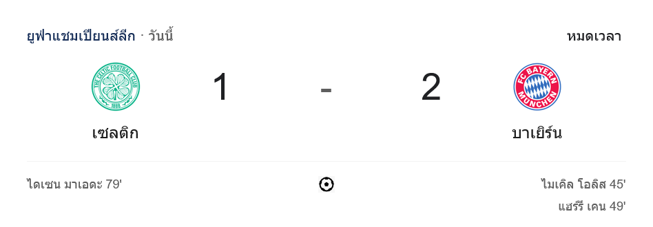 • 🔚 จบเกมบาเยิร์น บุกชนะ เซลติก 2-1