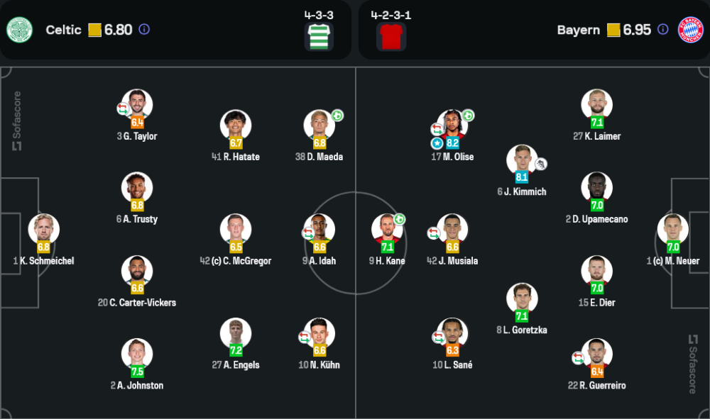 บาเยิร์น มิวนิค มาในแผน 4-2-3-1 ที่เน้นการครองบอลและขึ้นเกมจากแดนกลาง ขณะที่ เซลติก ใช้ 4-3-3 โดยเน้นการโจมตีด้วยความเร็วของ มาเอดะ และ คูห์น