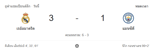 • นาทีที่ 95 กรรมการเป่านกหวีดจบเกม เรอัล มาดริดเอาชนะแมนเชสเตอร์ ซิตี้ 3-1!